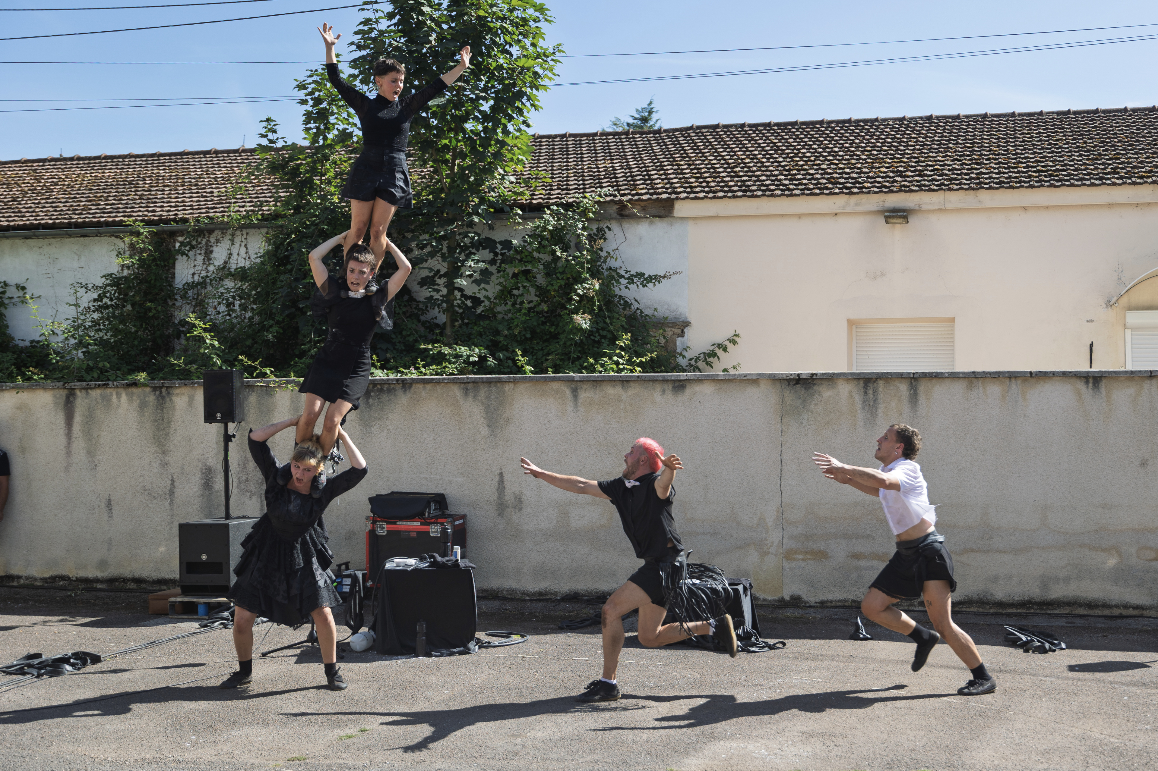 La 3 et demie est une compagnie de cirque contemporain créée fin 2022 par cinq artistes formées aux portés acrobatiques. Entre cirque, théâtre physique et absurde, le collectif développe un langage engagé, sensible et ludique, porté par la force du groupe.