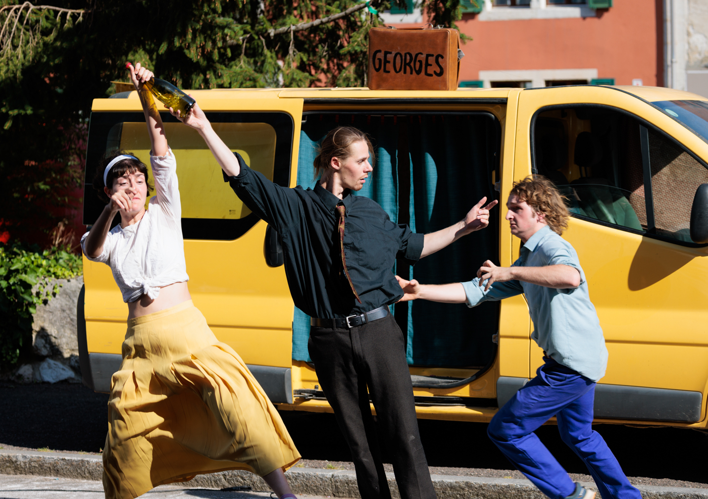Avec Goodbye Georges, la compagnie l’Engrenage s’attaque à la question du deuil en mêlant théâtre, musique et cabaret. Dans ce spectacle de rue burlesque et surnaturel, quatre personnages embarquent le public dans leur quête impossible d’un adieu parfait, traçant avec poésie un chemin possible entre les vivants et les morts.