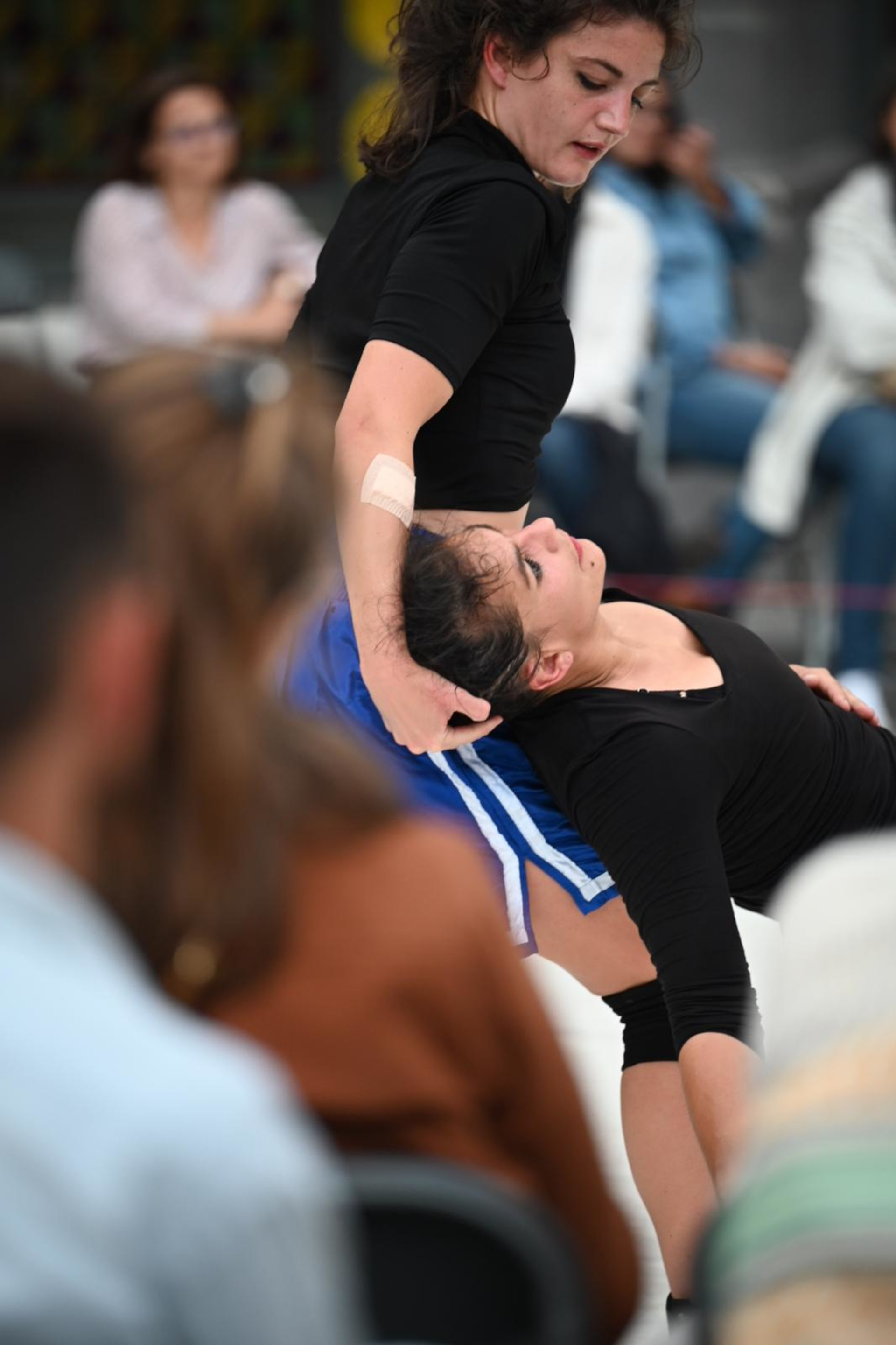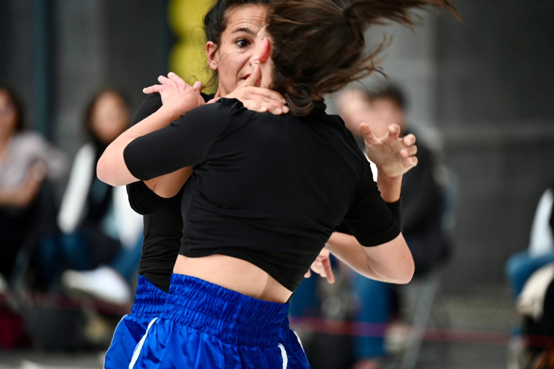 rencontre. Deux femmes se confrontent : démonstrations de force, corps à corps puissants, tentatives